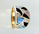 Many of our designs are created using an art of cutting stones called Inlay. Inlay is a process where a stone is cut & shaped to fit perfectly within area called a channel. After the stone is carefully fit, an extremely powerful epoxy is applied to secure it. When the epoxy cures, the stone is sanded down to the desired height & polished. Different colors and shapes are possible. I'm proud to say I was one of the pioneers in this process dating back some 40 years ago. Other talented artists such as Jerry Spaulding, John Bagley, Raoul Sosa and others were also hard at work developing this technique. Inlay takes incredible patience. The work must be meticulous and the lines perfectly straight. My 25 year old son Isaiah is my apprentice and working diligently on learning this technique. I'm proud to say he has the gift. Since jewelry schools don't teach inlay, keeping the art alive is a bit of a challenge. As this website progresses it will include a brief video showing the process in motion. As you browse through our designs, please keep in mind that if you see a ring design you like but would prefer a different stone, that's not a problem. You can order any design in any stone or combination. I would like to extend my deepest gratitude, love and support to my dear friend Karina Cross. Her dedication and assitance in teaching my son Isaiah stone cutting was invaluable. She's the best.